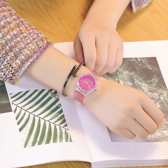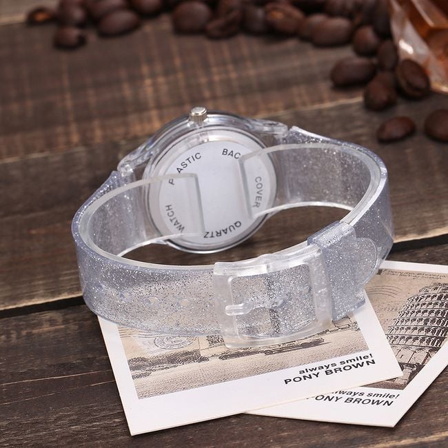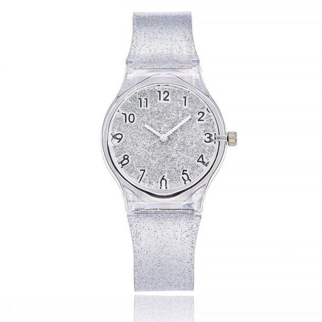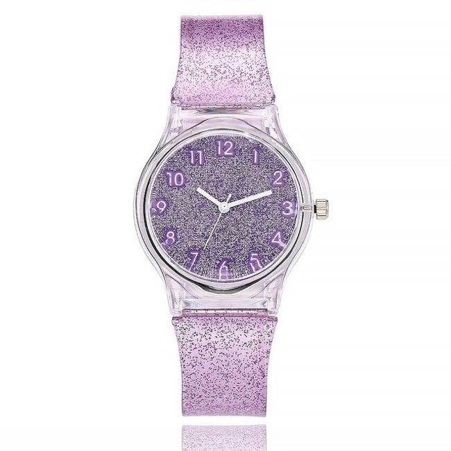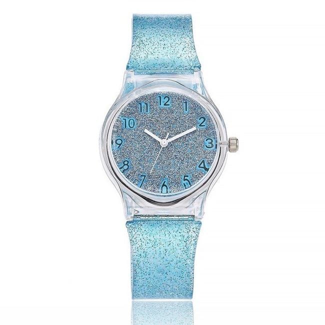 Colourful watches with glitter are available in eight cheerful colours.