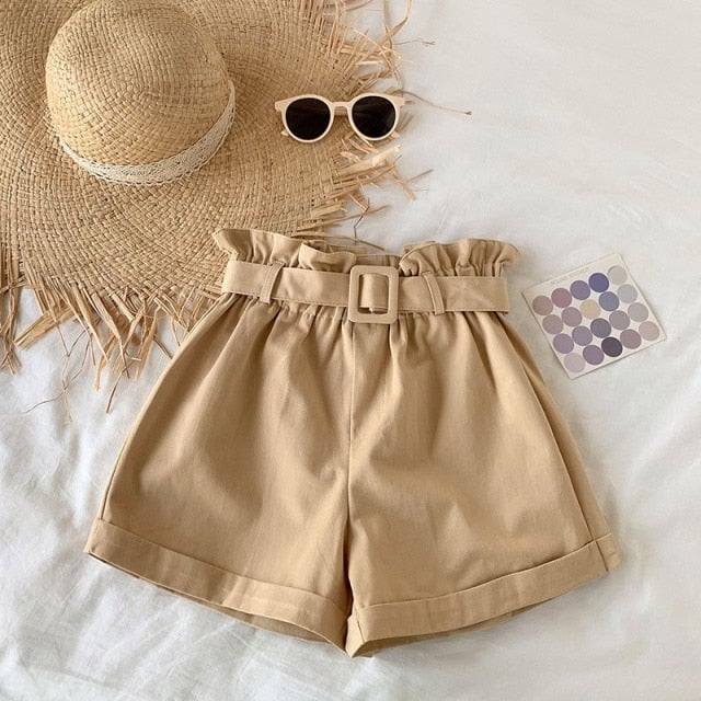 Colourful women's shorts with a belt - available in multiple colours.