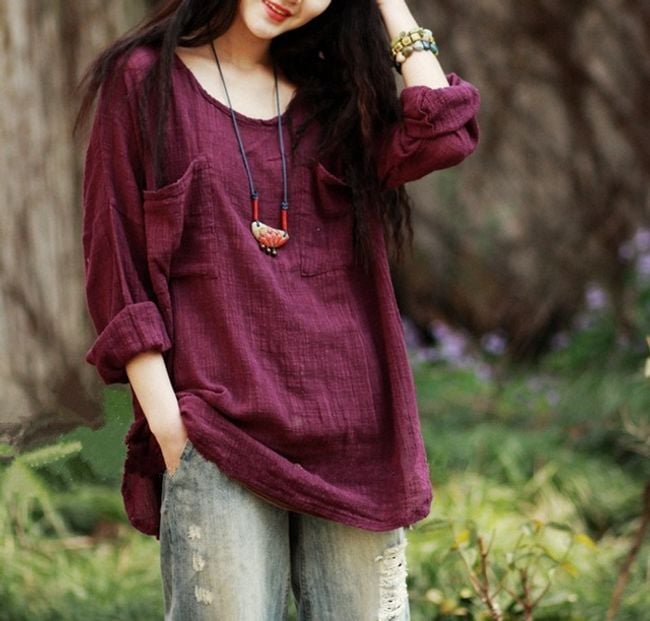 The blouse is very stylish, in a solid colour, and is suitable as an accessory for everyday wear.