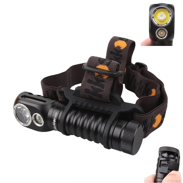 Compact headlamp, the flashlight can be detached from the belt.
