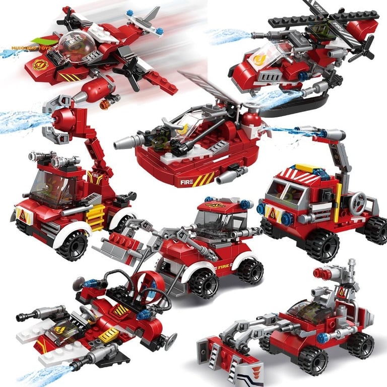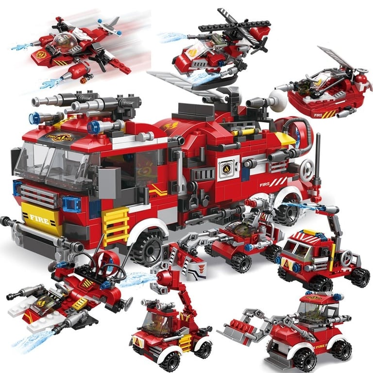 The 8-in-1 fire truck building set is compatible with Lego building blocks.