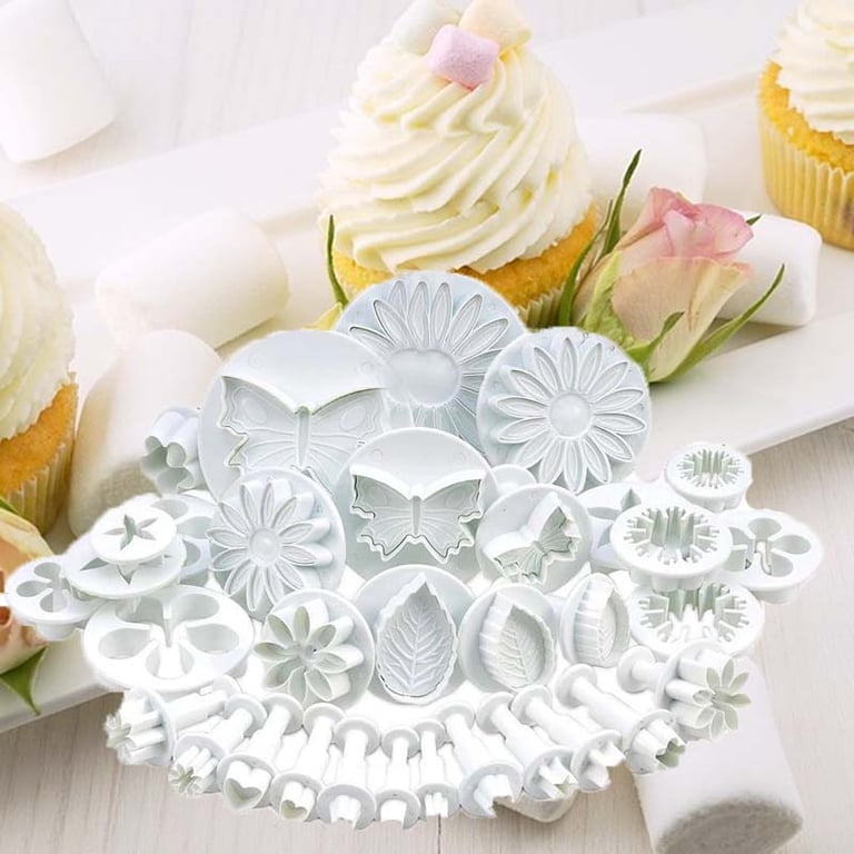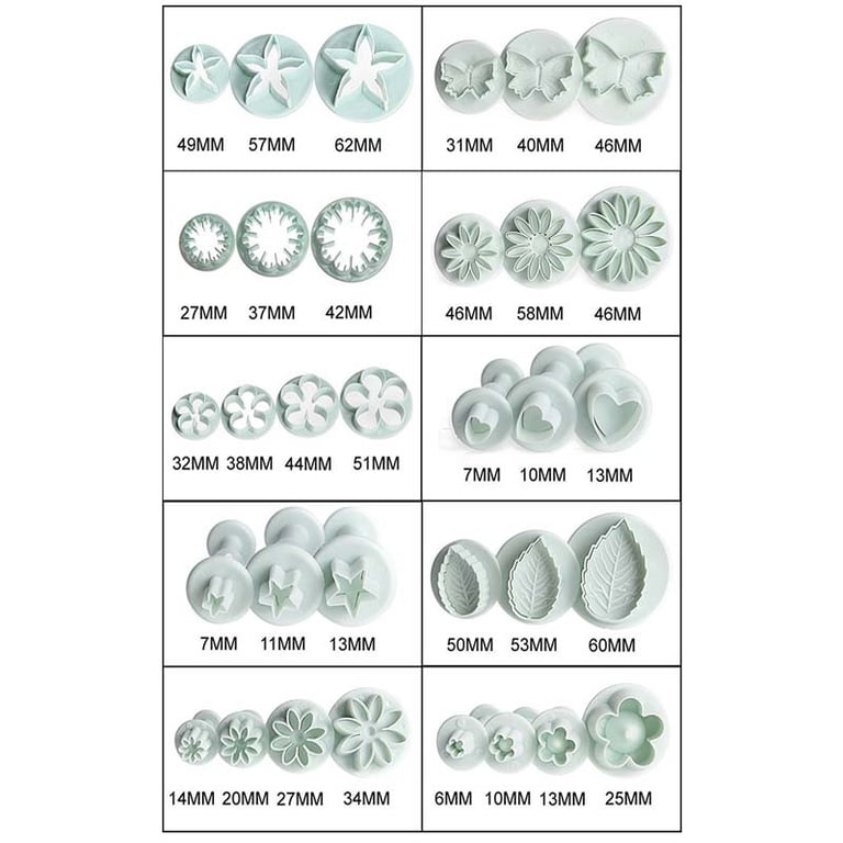 Set of 33 cookie cutters with stamps, which are primarily suitable for fondant or marzipan decorations, but will certainly also be useful for making sweets or biscuits.