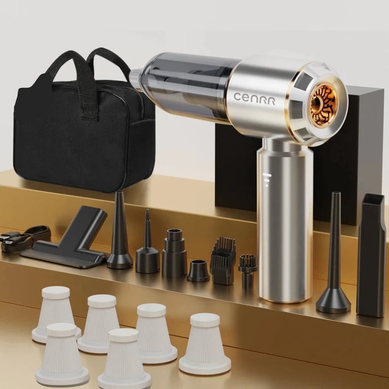 A powerful cordless handheld vacuum cleaner designed primarily for use in the car, but you will also find it handy at home. The modern brushless motor provides high performance and long life. In the box you will find a generous range of accessories, including a USB-C charging cable, a user manual and up to nine different attachments. The elegant silver or black finish will complement any interior.