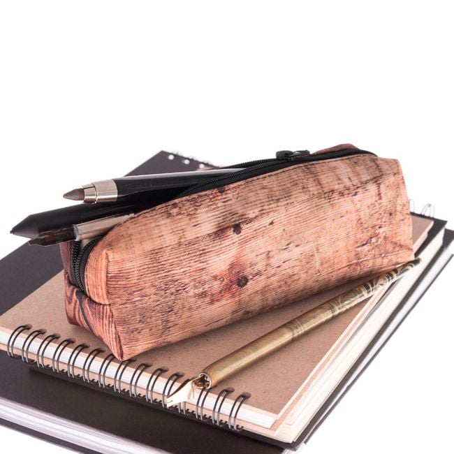 In this original pouch, you can store your cosmetics. The pouch is small in size, making it easy to carry in your handbag. The attractive pattern looks as if the bag is actually made of wood. You can also use it as a pencil case.