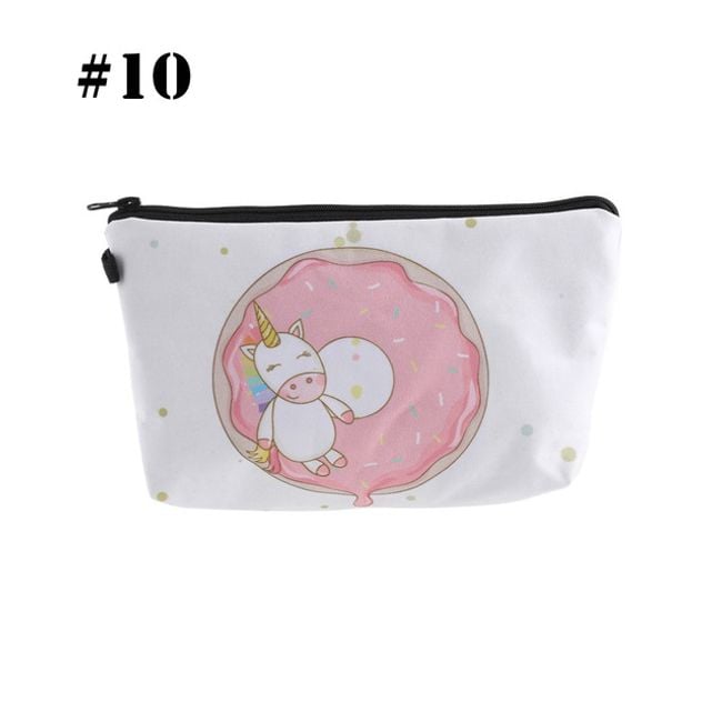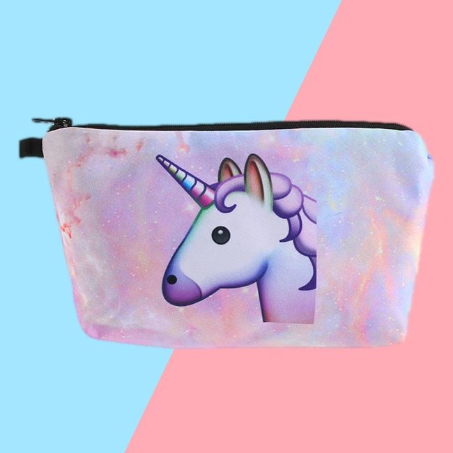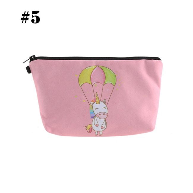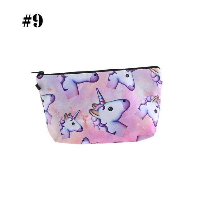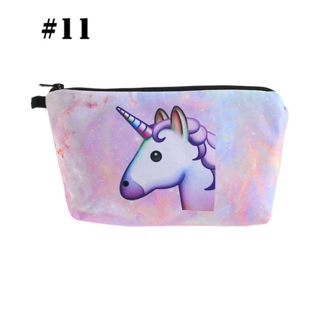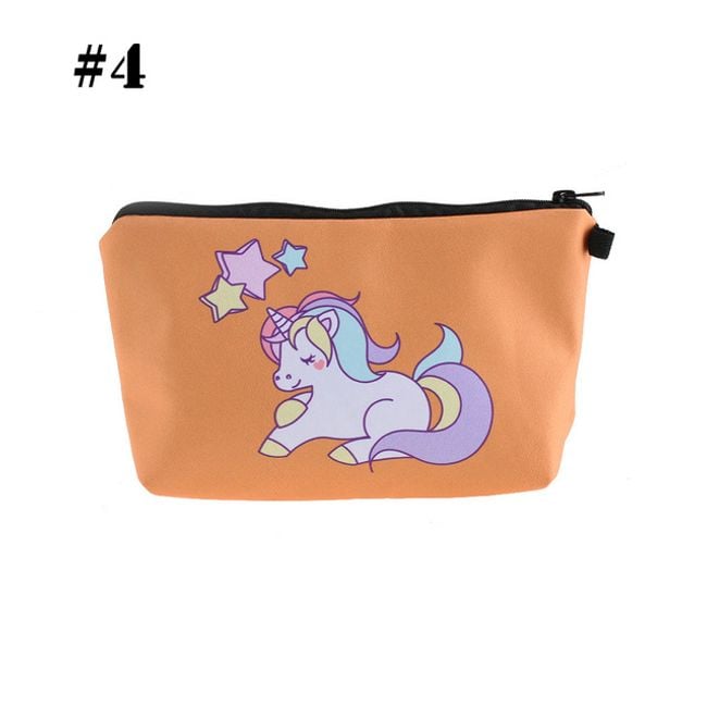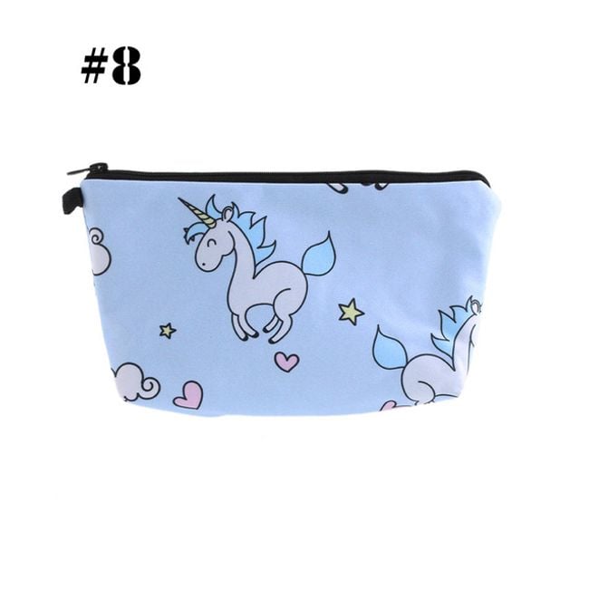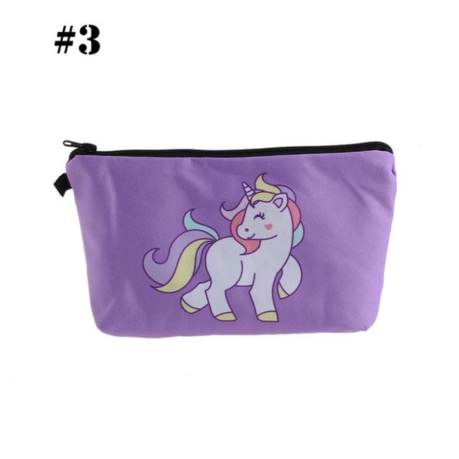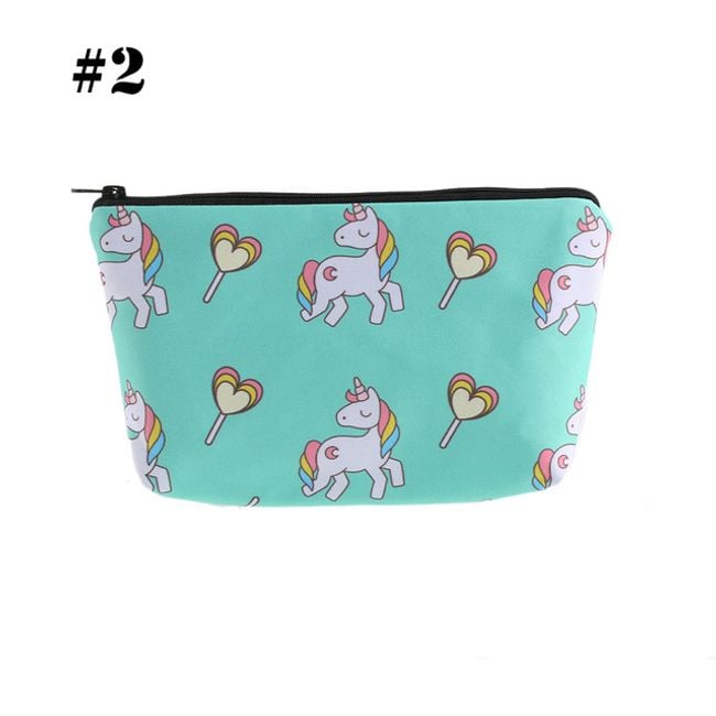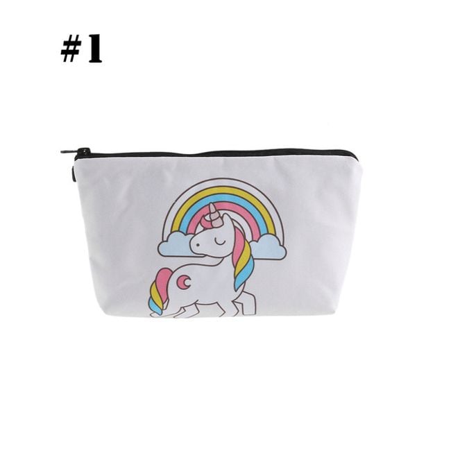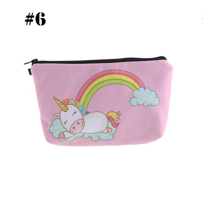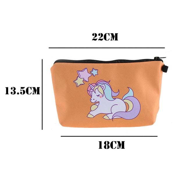 Cute girls' cosmetic bag with various unicorn designs. It can also be used as a pencil case for writing supplies.