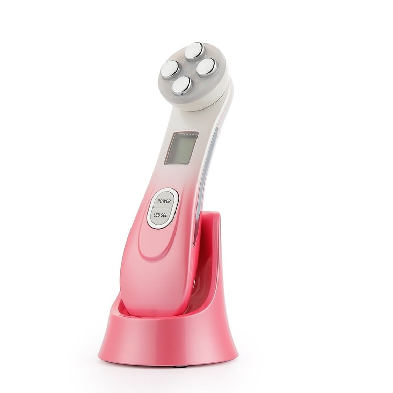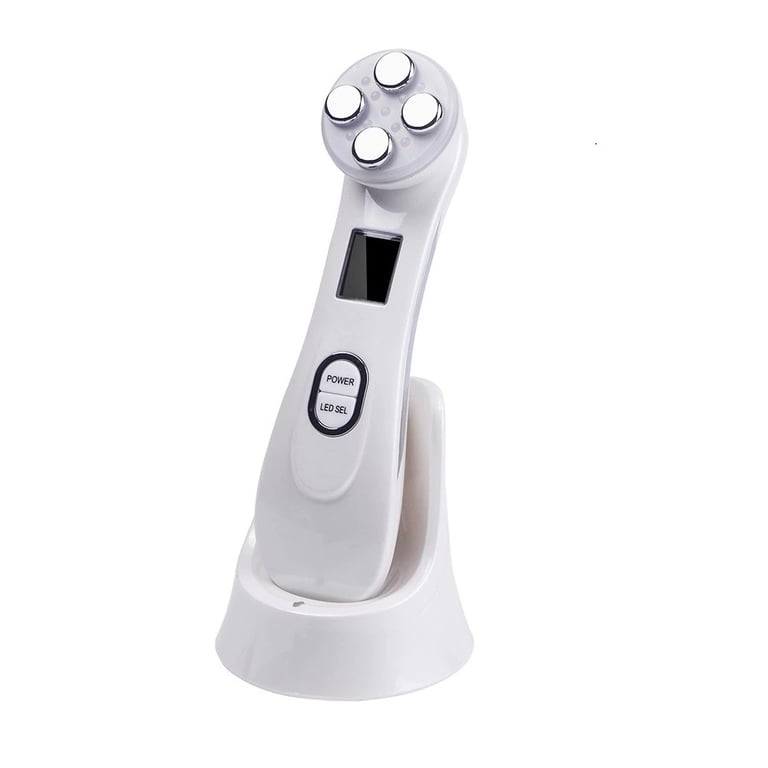 This cosmetic device is a handheld skin care tool. Using radiofrequency, it helps reduce deep and fine wrinkles. This device features photon therapy, which is an effective method for skin treatment. LED diodes generate a wavelength of light energy, which determines the effects of photon therapy. This device combines 5 types of light (red, blue, green, yellow, pink).