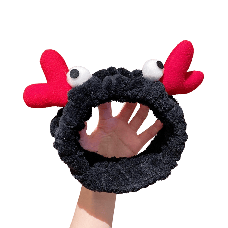 This funny headband is soft and gentle on your head. The headband features attached eyes and horns for a unique look. The headband does not press or pull on your hair. The cosmetic headband is ideal for keeping your hair away from your face while applying makeup or doing other tasks.