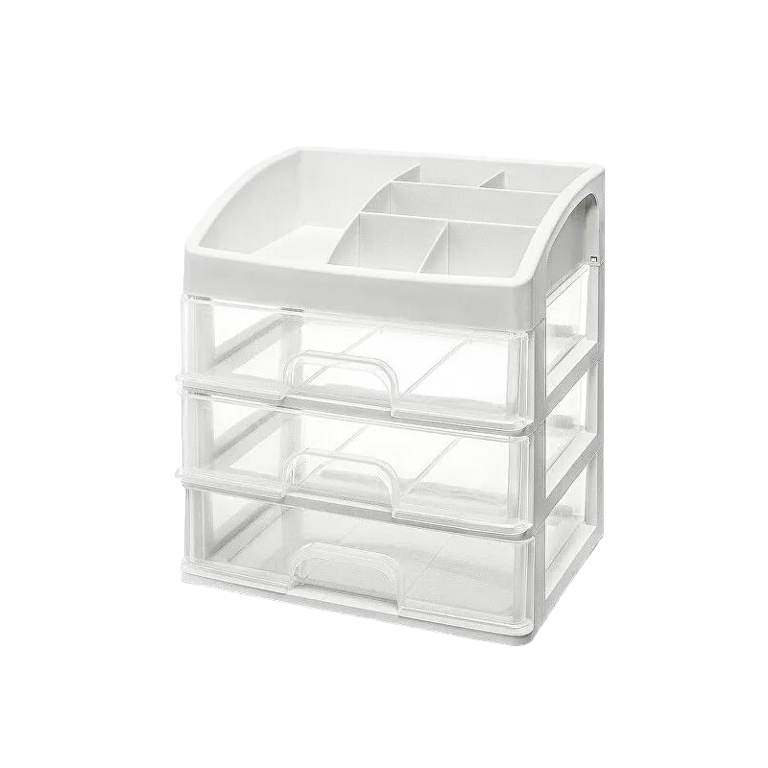 This handy organiser features compartments and three drawers, allowing you to keep your cosmetics neatly stored. The cosmetic organiser is made from high-quality material and has dimensions of 27 x 23.5 x 17 cm. This way, you can easily find what you're looking for, even in the midst of a busy morning.