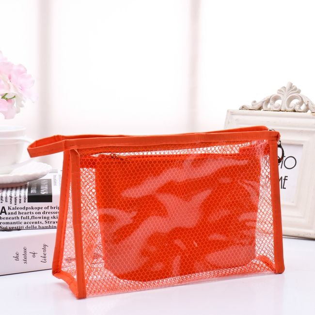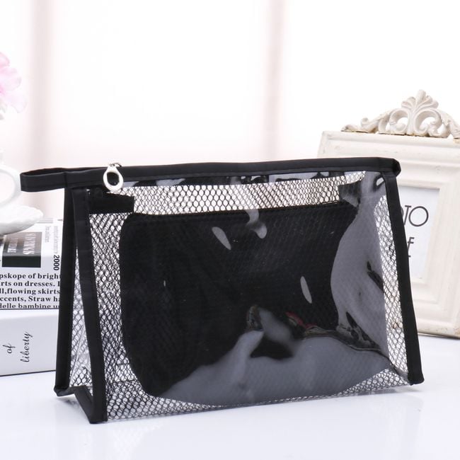 A set of two cosmetic bags will delight any woman. The smaller bag can be placed inside the larger one, keeping your cosmetics nicely organised. Available in seven colours.