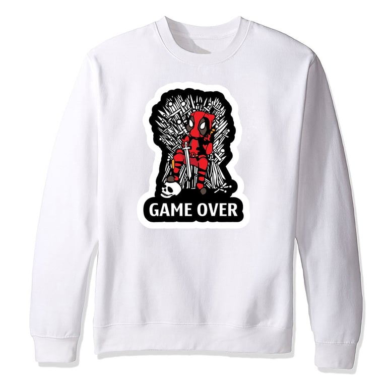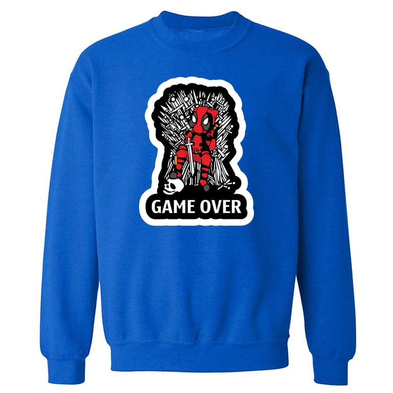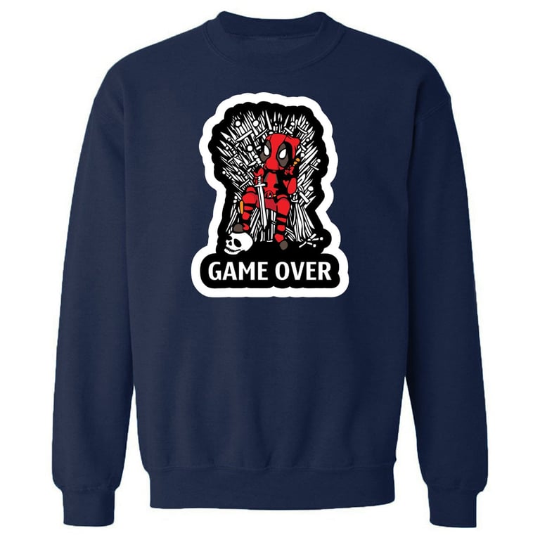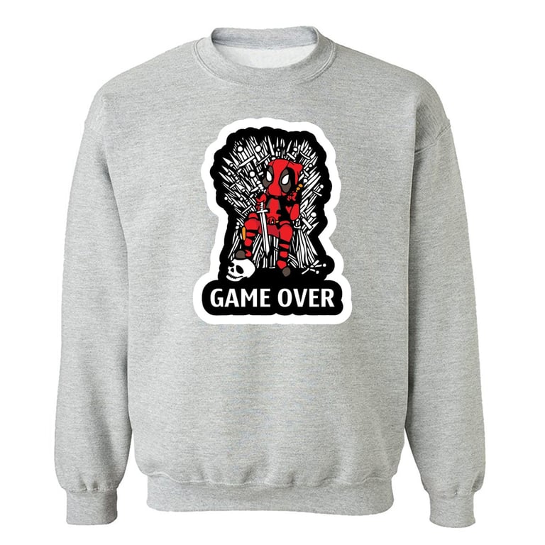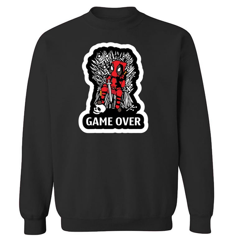 • High-quality men's pullover hoodie featuring a Game of Thrones style graphic and the character of the movie superhero Deadpool.