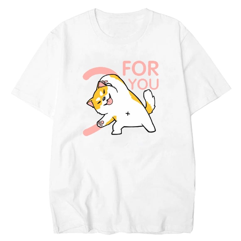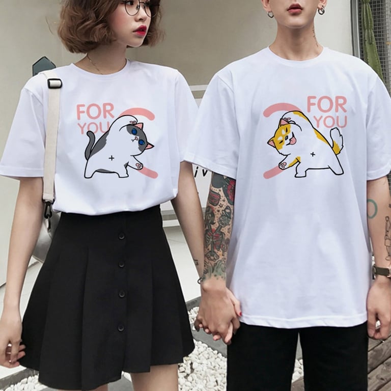 Couple T-shirts featuring images of cats. Sizes are the same for both women and men.