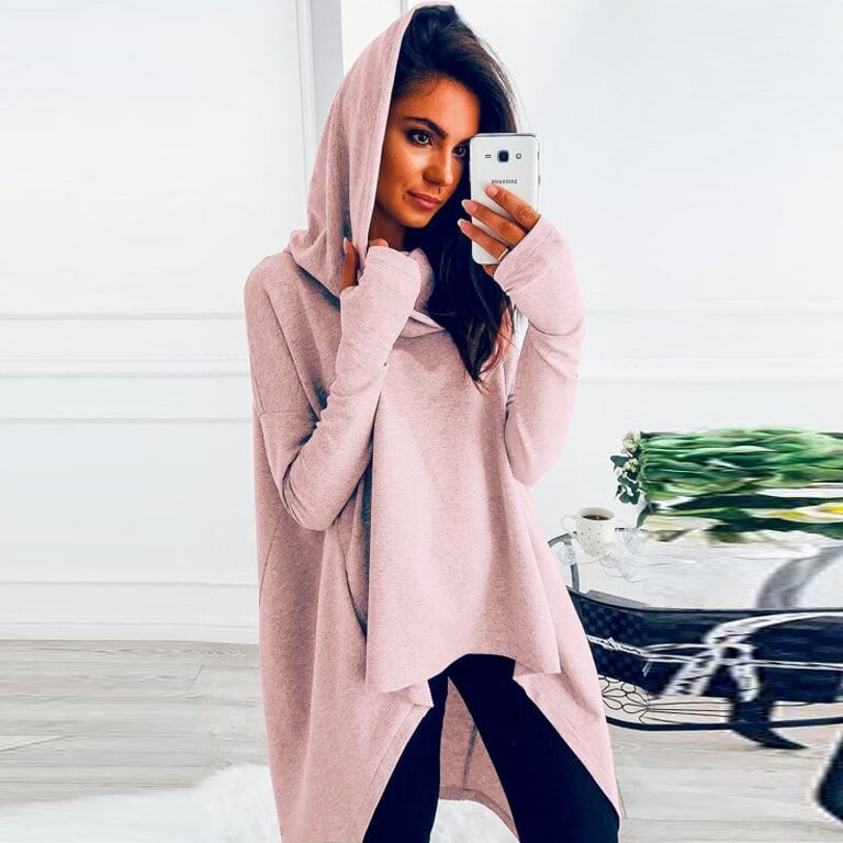 Comfortable asymmetric hoodie with a casual hood and attractive colour.