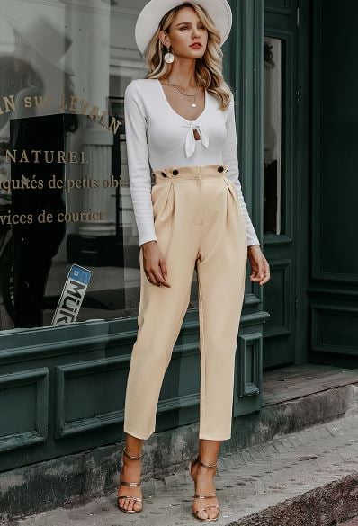 Cream cigarette women's cargo trousers with pockets