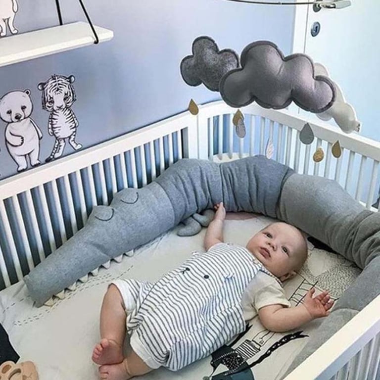 A fantastic bumper in the shape of a crocodile, which will keep your baby safe and later serve as a toy.