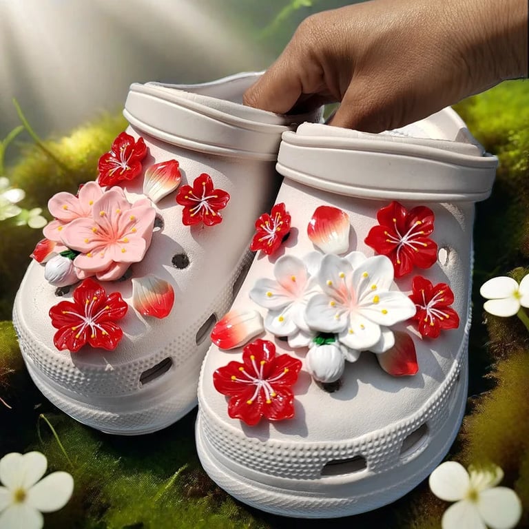 Flower-shaped decorations for Crocs - 16 pieces.