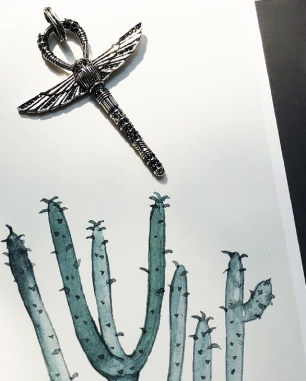 Cross pendant with wings