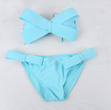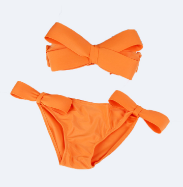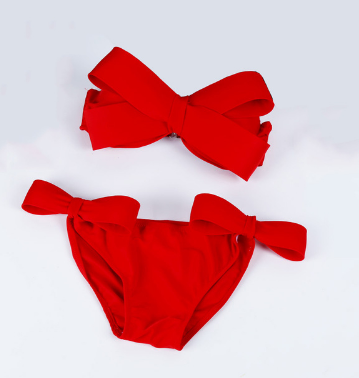 Crossed extravagant imaginative women's swimsuits in multiple colours.