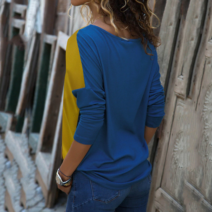 Crouwdy long-sleeved colourful t-shirt – blue and yellow