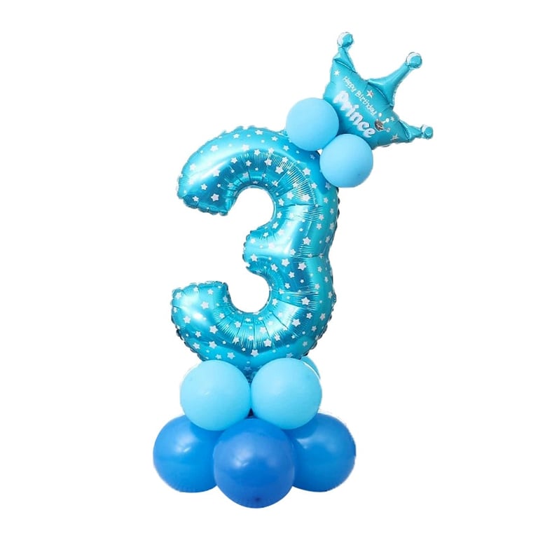 You can attach the balloon number to several small balloons and place a crown on top.