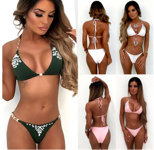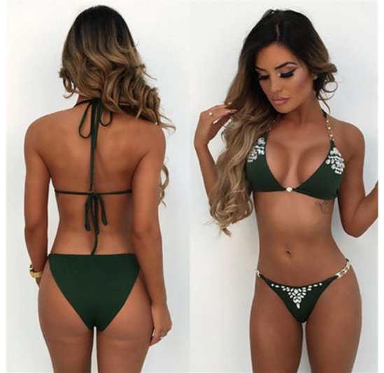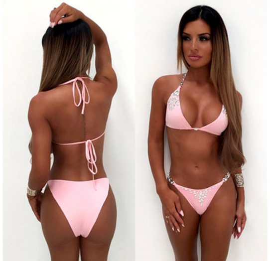 Crystal single-colour women's bikini with rhinestones