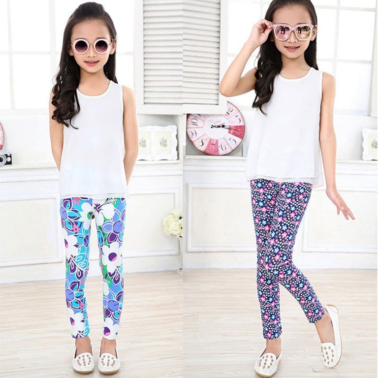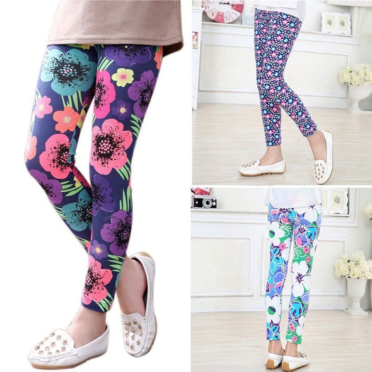 Beautiful girls' leggings with lovely patterns, such as flowers.