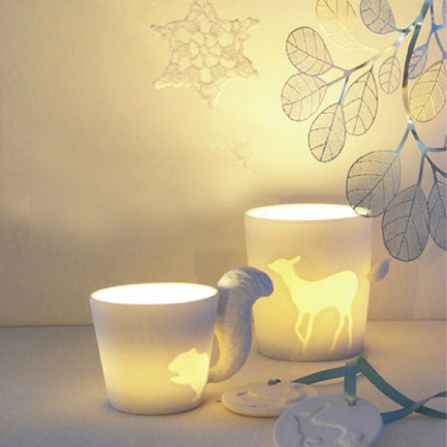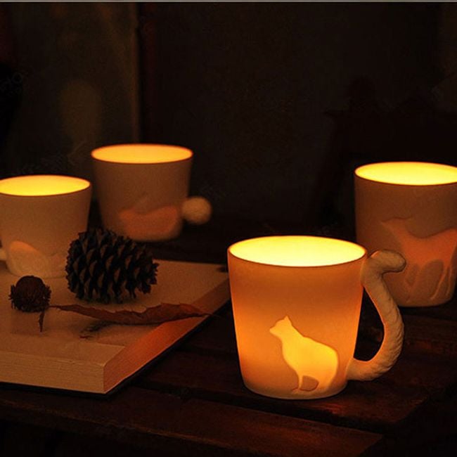 The tea light holder mug is a great gift for your friends. Simply place a tea light in the mug. Once lit, the outline of the animal beautifully stands out. The handle of the mug is uniquely designed as a tail.