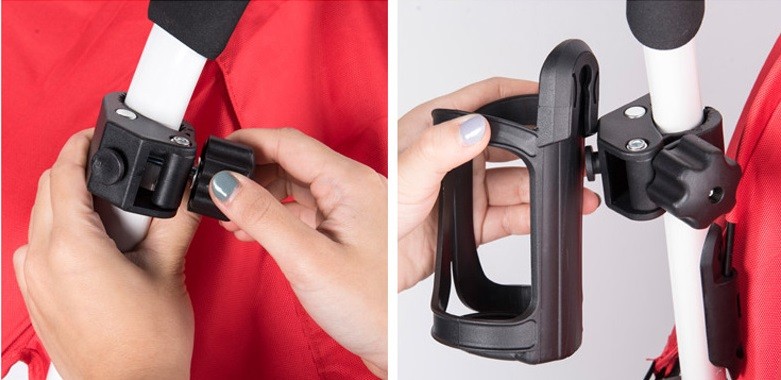 Very practical bottle holder that you can easily and quickly attach to a stroller.