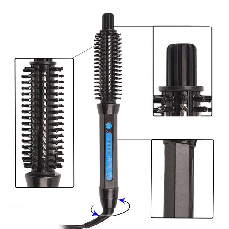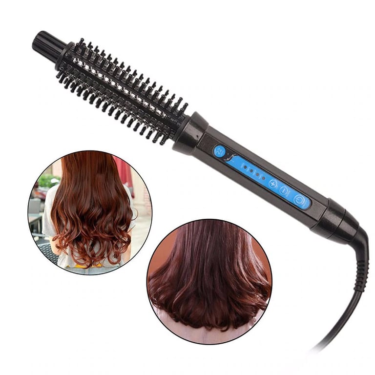 Curling iron with adjustable temperature in a practical design for quick hair styling.