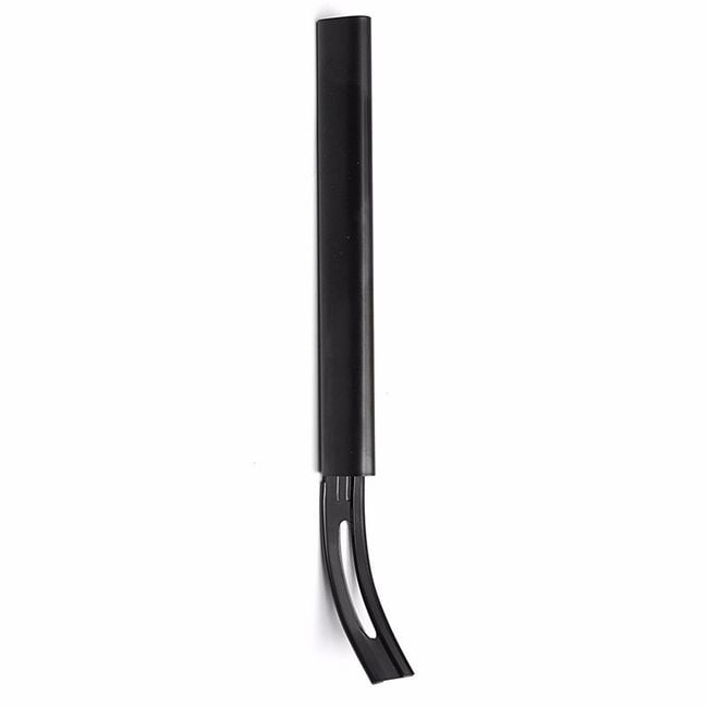 Craftsman's curved skiving and edge trimming knife for leather. Designed to prevent cutting too deeply into the leather, ensuring safe and precise work with the knife. Available in black.