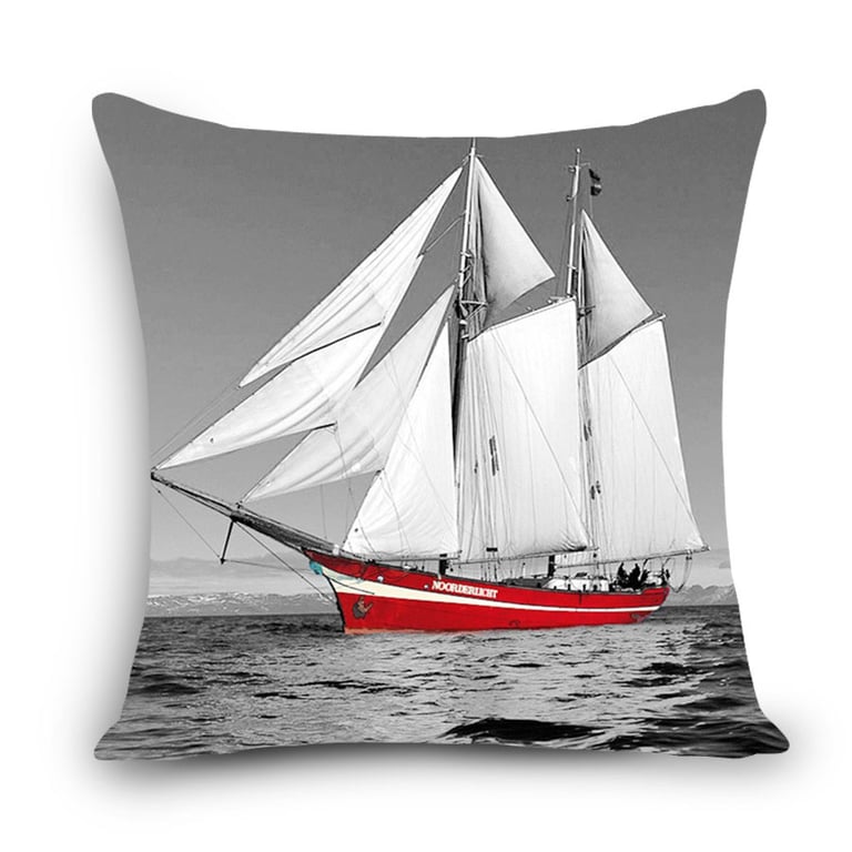 Decorative pillowcase with a colourful print. Design featuring a sailing boat. Dimensions 45×45 cm.