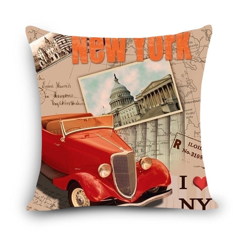 Decorative cushion cover with a colourful print. New York motif. Dimensions 45×45 cm.