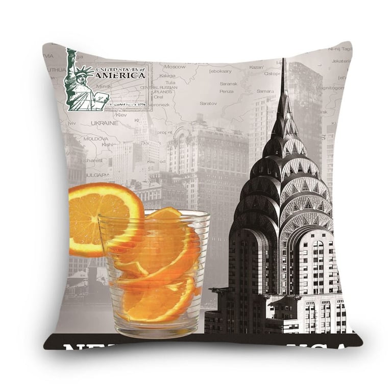 Decorative cushion cover with a colourful print. New York motif. Dimensions 45×45 cm.