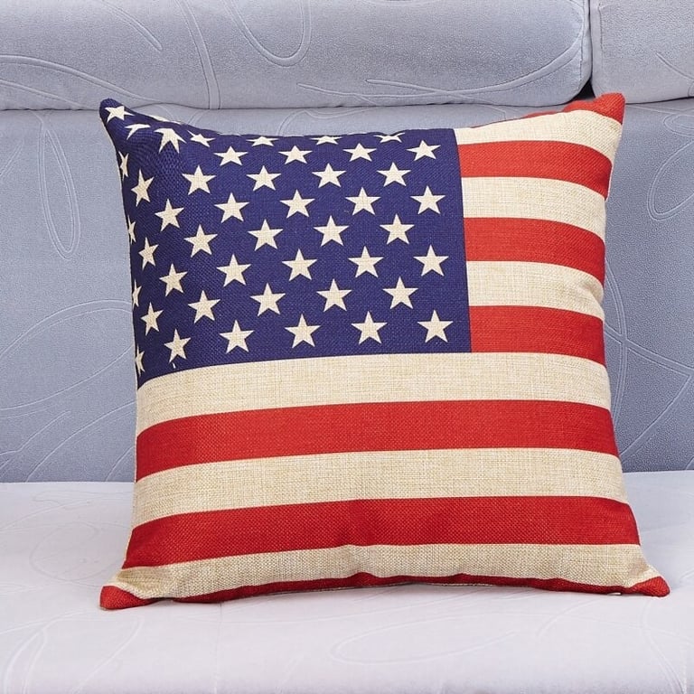 Decorative cushion cover with a colourful print. Design featuring the American flag. Dimensions 45×45 cm.