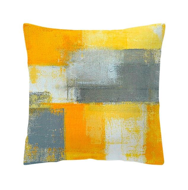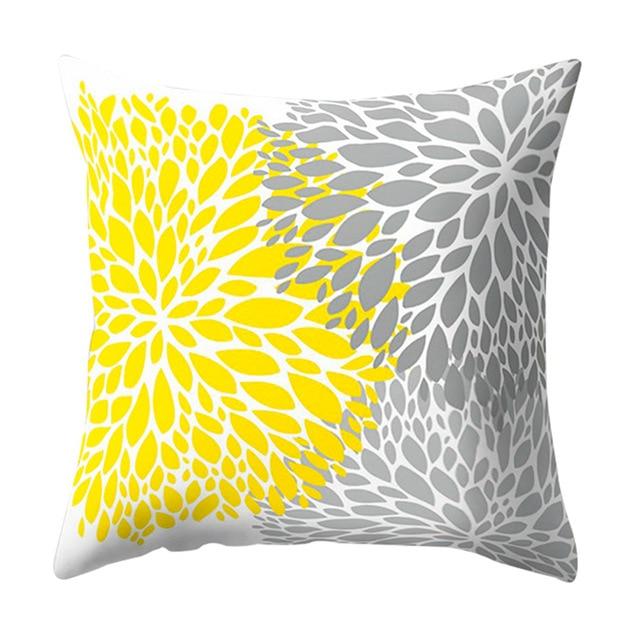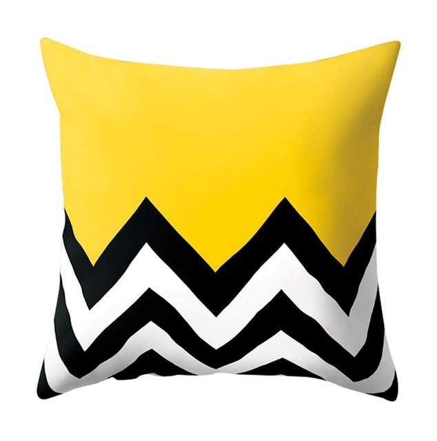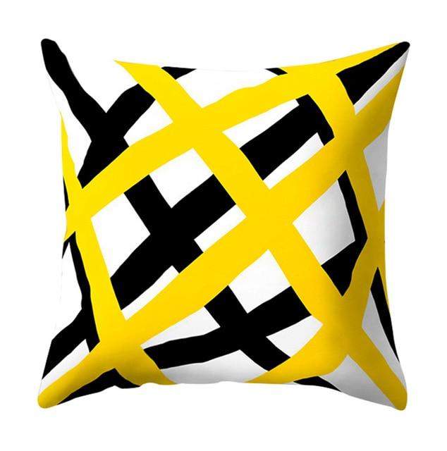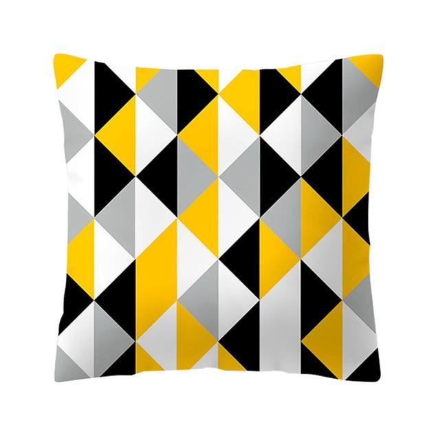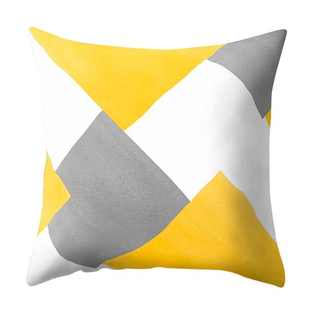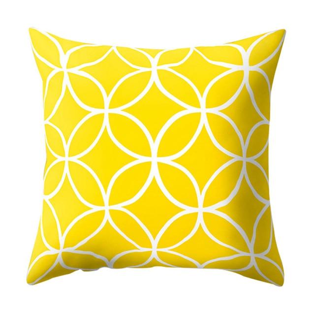 Pillowcase with a geometric pattern in yellow.