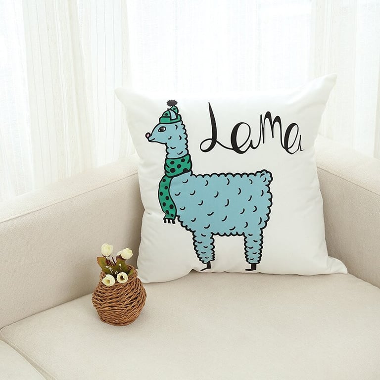 Decorative cushion cover with a colourful print. Llama motif. Dimensions 45×45 cm.