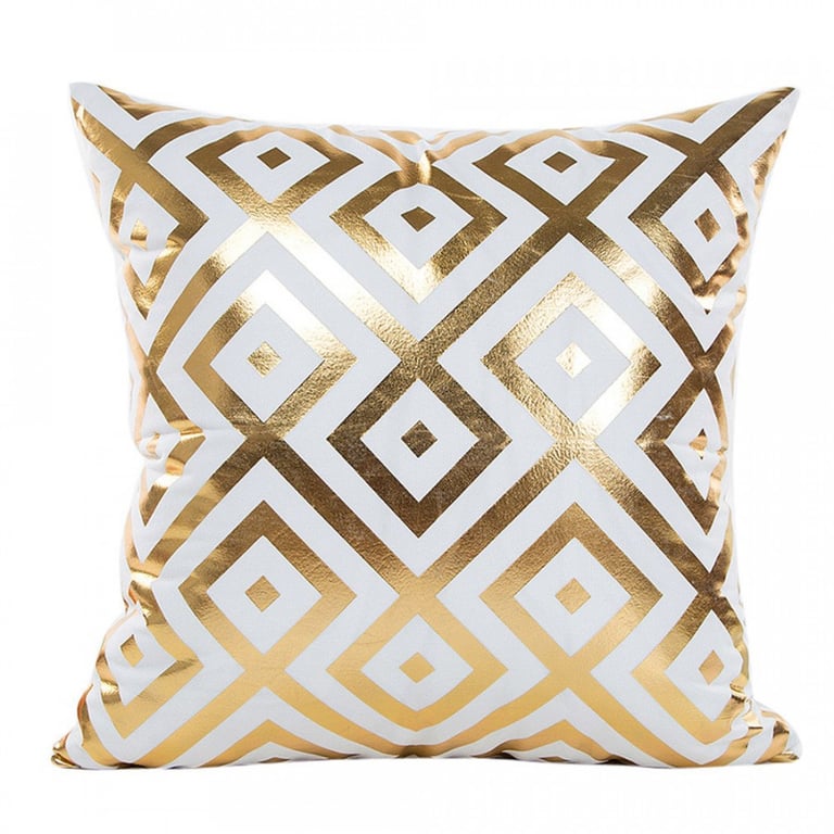 Decorative cushion cover in a luxurious combination of gold and white. Geometric pattern. A great addition to the home.