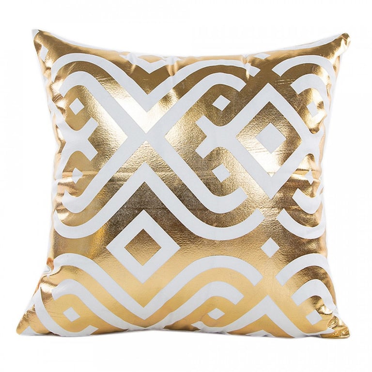 Decorative cushion cover in a luxurious combination of gold and white. Geometric pattern. A great addition to the home.