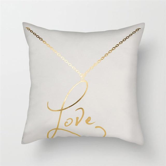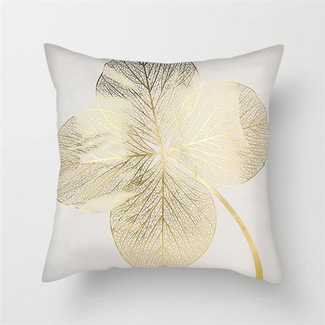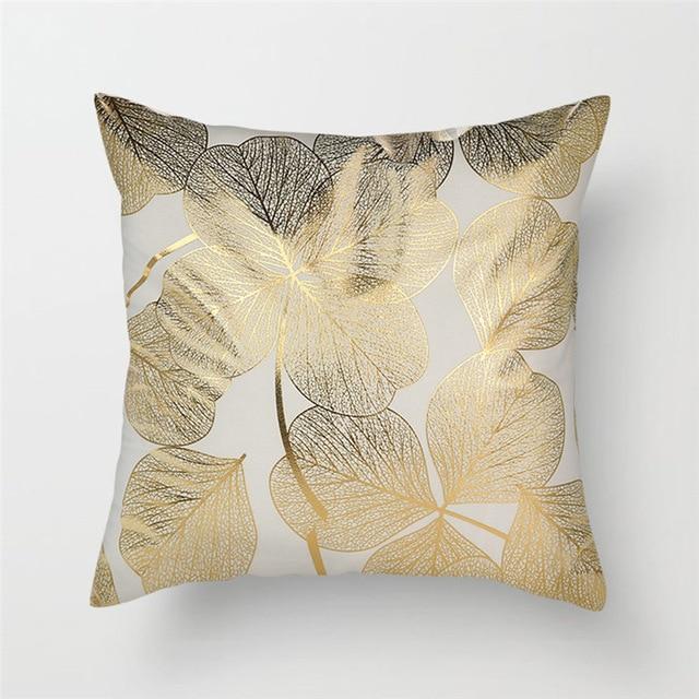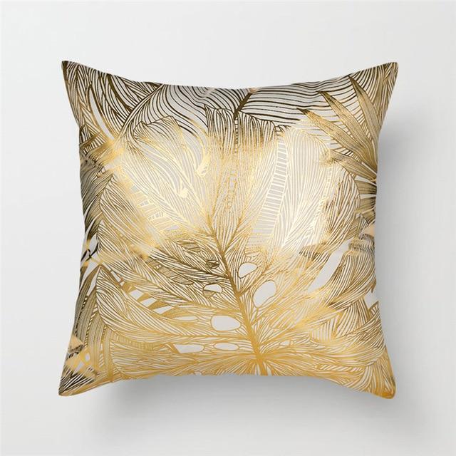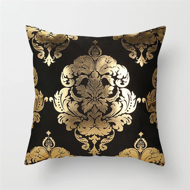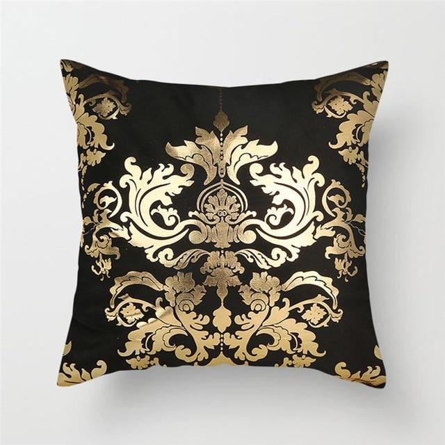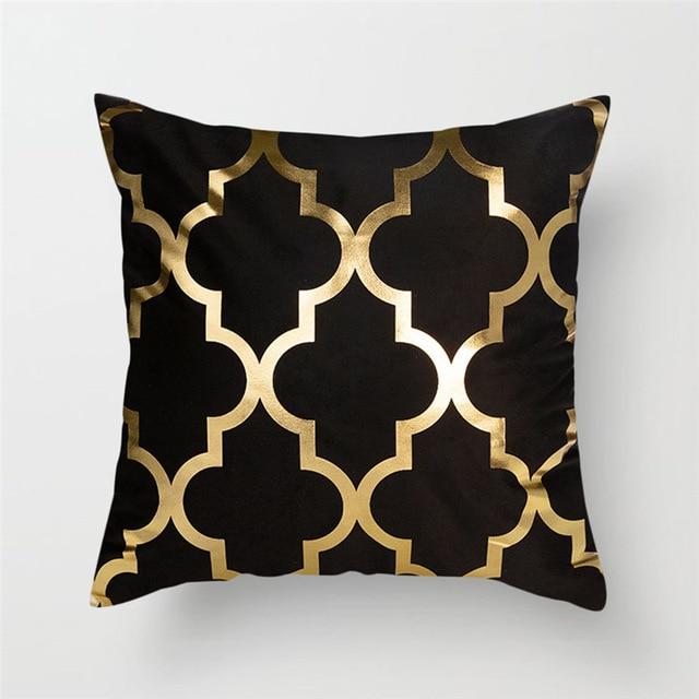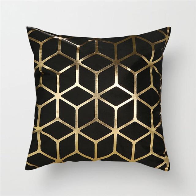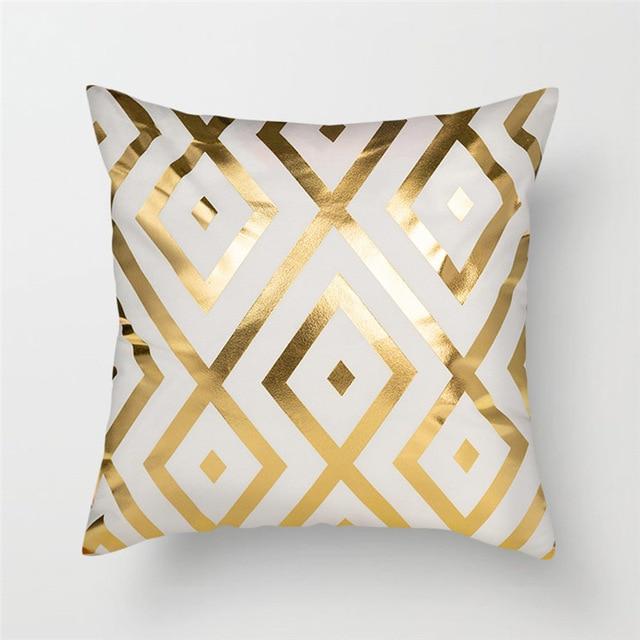 Original cushion covers with geometric patterns in a gold finish.
