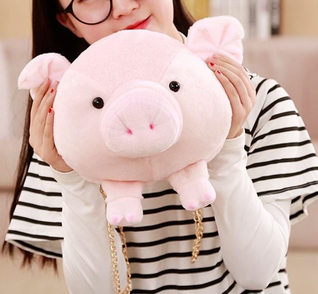 A cute piglet can keep you company in bed or you can carry it with you as a handbag.