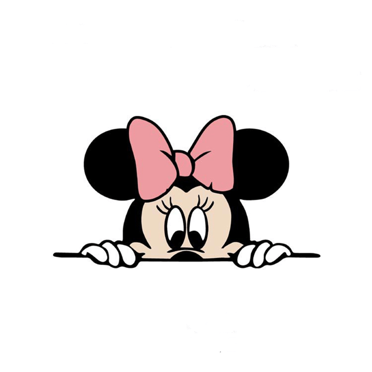 A loving couple, Minnie Mouse and Mickey Mouse, in the form of a car sticker.