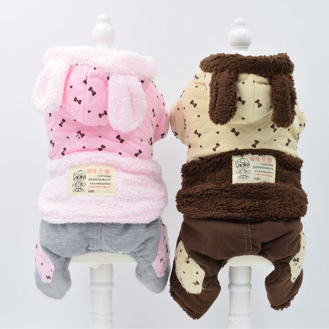 The jumpsuit comes in pink-grey or brown-cream colours, and is adorned with bunny ears on the hood, making your dog look truly adorable once dressed.