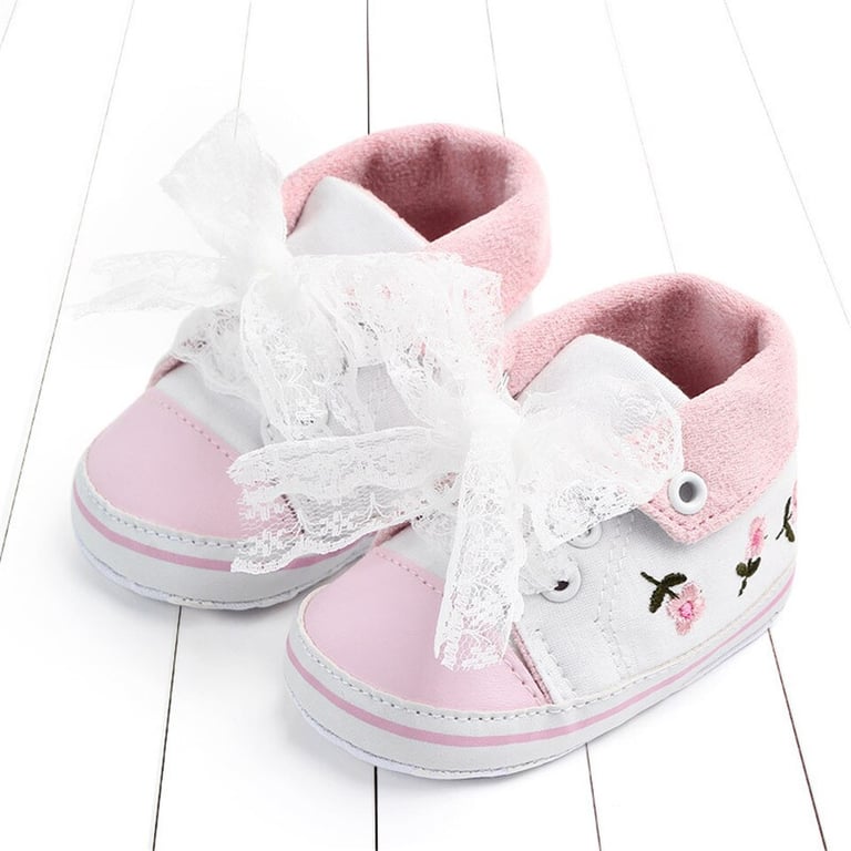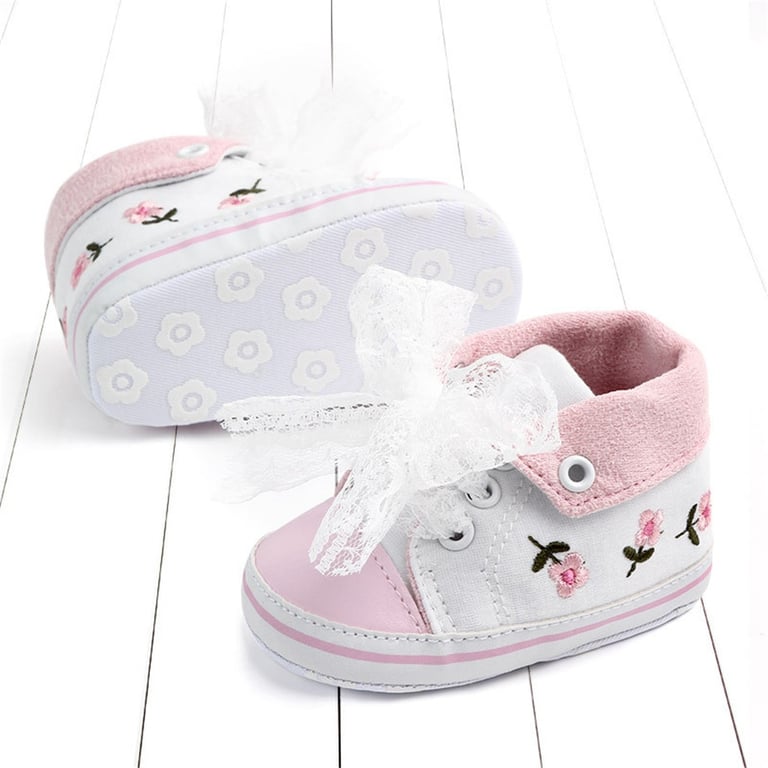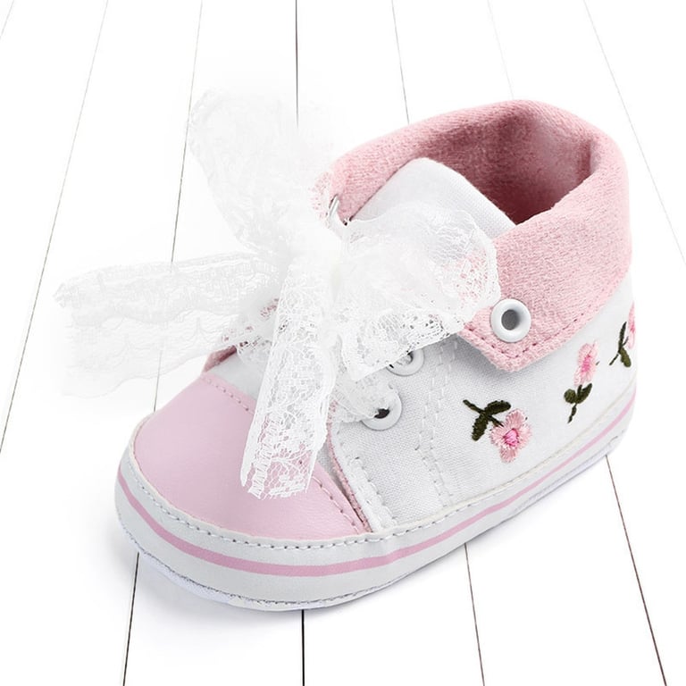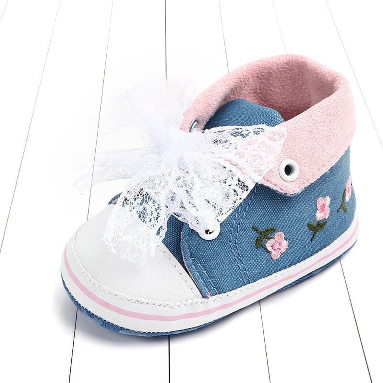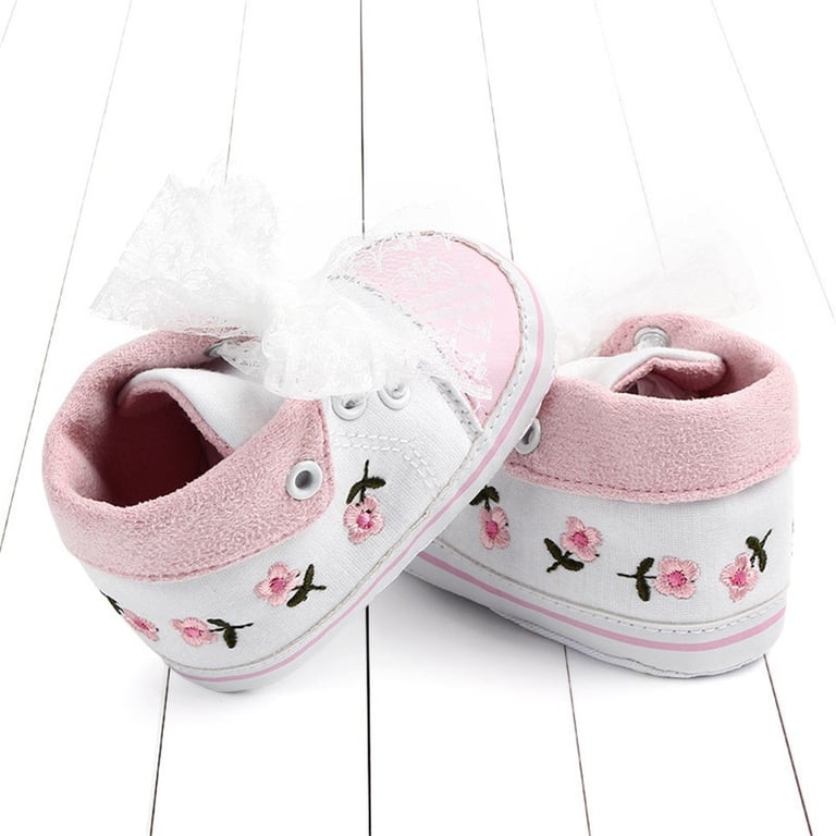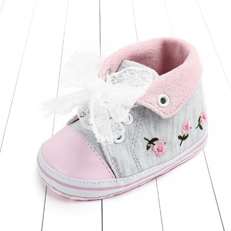 • These casual shoes are adorned with flowers and the main feature is the lace bow!