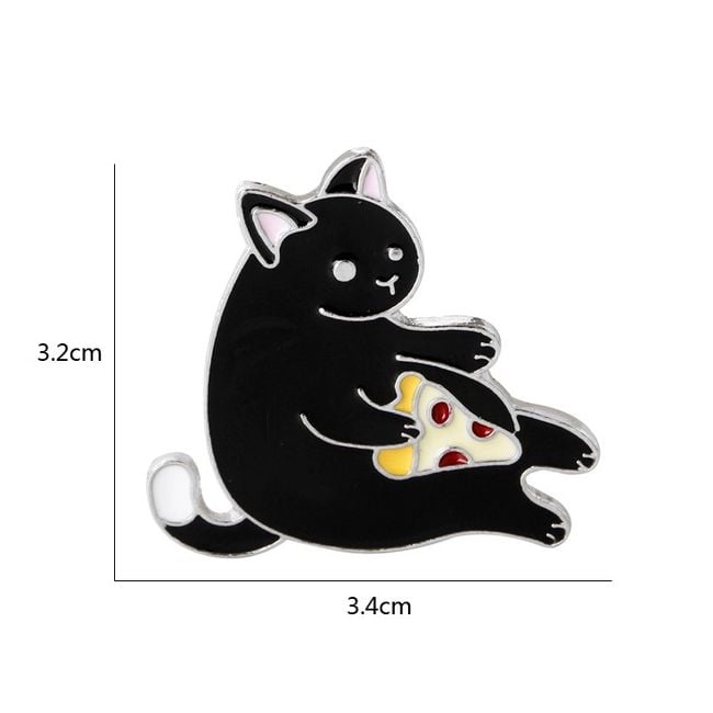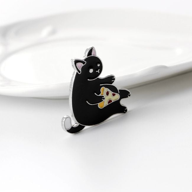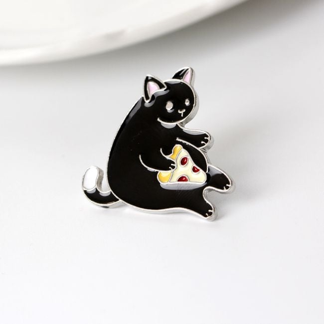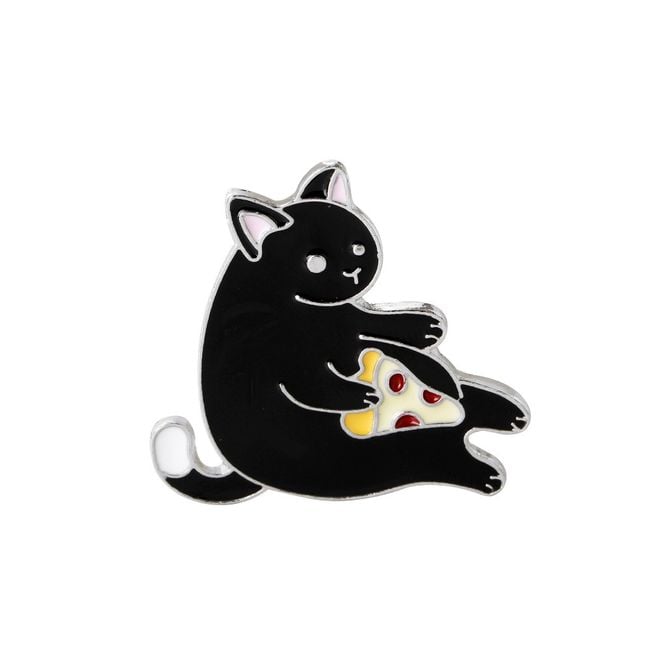 Cute pin brooch in the shape of a black cat with a slice of pizza. An ideal piece to refresh your summer outfit and perfect for all cat lovers! You can wear the brooch on its own, or use it for various festivals, parties, or concerts. Just pin it to your bag, backpack, or clothing.