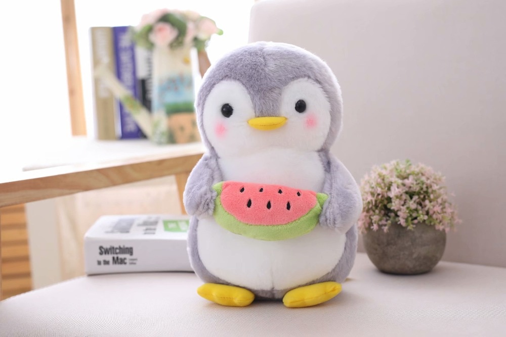 A beautiful cute 25cm tall penguin available in many variations. Holding a chilly, watermelon, banana, or carrot. There is also a version with a small bow on its head and a blue butterfly around its neck.