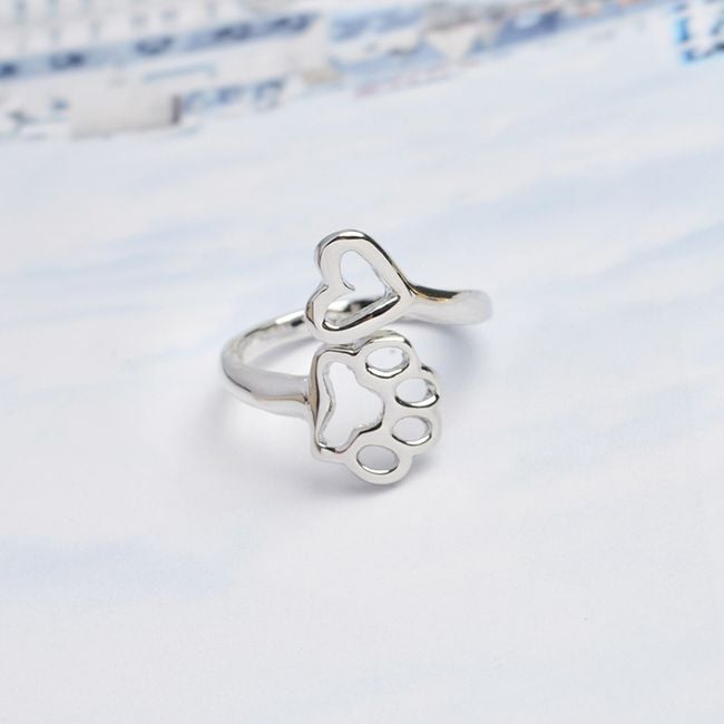 Cute ring with an animal paw and heart. You can choose between a gold or silver version. The ring has an adjustable size, making it a very suitable gift, ideally for all pet lovers.