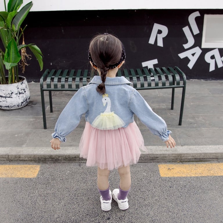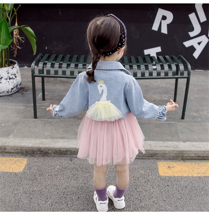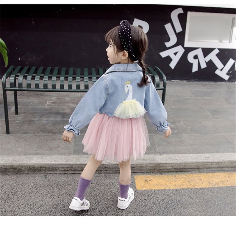 Tags: girls set, children's set, girls dress, dress, long sleeve dress, dress with tulle skirt, jacket, denim jacket, crop top jacket, children's jacket, girls jacket, kids, children's clothing, girls fashion, fashion