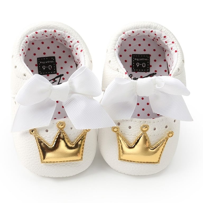 Cute toddler shoes with a crown and a bow.