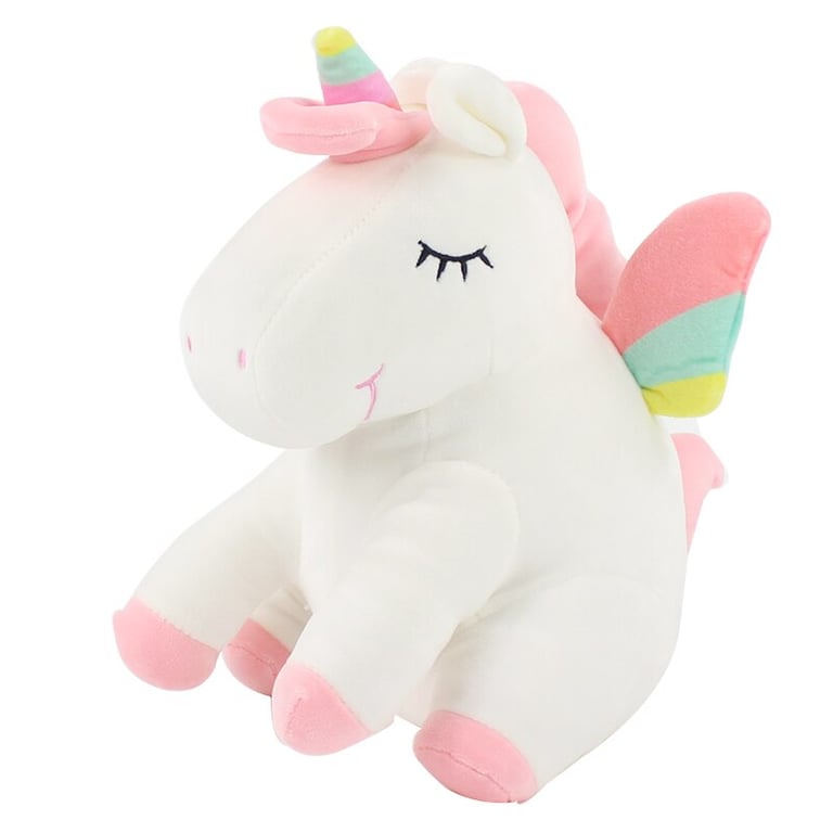 Cute 30 cm plush unicorn with a rainbow horn – 2 colours. Bring joy to your little ones.