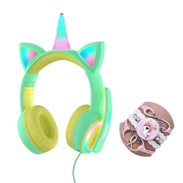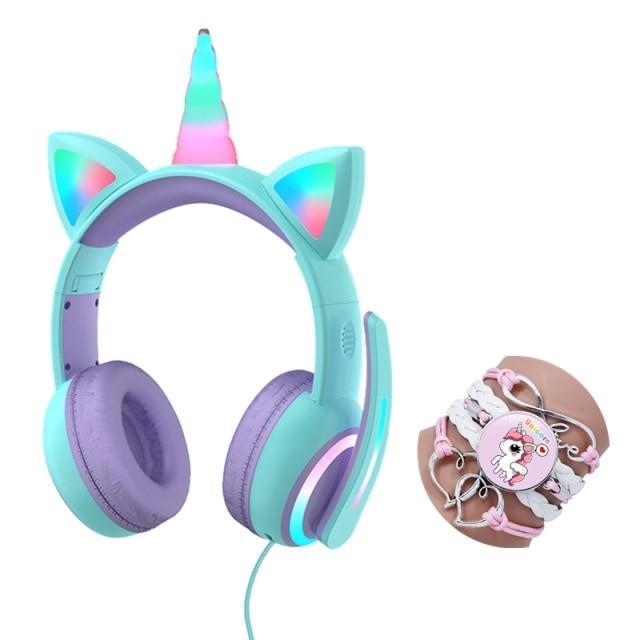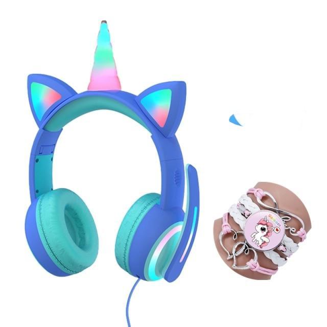 Cute wireless headphones with LED light. Enjoy wireless stereo music. Beautiful unicorn design.