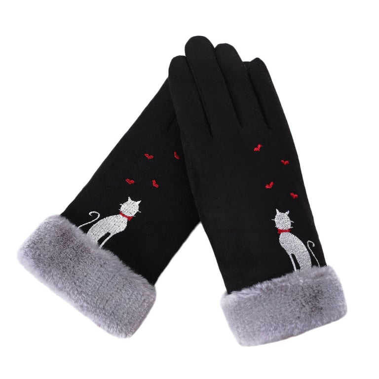 Beautiful gloves featuring a lovely print of a love-struck kitten. There is a special material on the index finger and thumb that allows you to use your smart touchscreen phone.